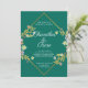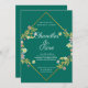 Blommigt Guld Geometric Minimalist Grönt Bröllop Inbjudningar