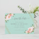 Här är ett modernt, snyggt sätt att tillkännage ditt bröllop-datum. Om du är i kärlek med temat elegant Mmynt grönt bröllop och även du kärlek guld och blommigtar, så är det här din perfekt matchning. Den här utformningen har rosa och mjuka persikor och knoppar från ro, tillsammans med en geometrisk form för faux guld-folie som omger informationen om Spara datum. Allt detta mot bakgrund av trendigets mynta grönt. All text anpassas enkelt med hjälp av den fält som finns i mallen. På baksidan av kortet kan du lägga till ett foto eller ytterligare information som du vill ha. Ta en titt på den åtföljande insamlingen av kompletterande bröllop-produkter. Detta är ett utmärkt val för Vår och Sommar bröllop. Om du har en designfråga eller vill se den här designen på en annan produkt kan du kontakta mig på jschmidtdesignworks@gmail.com. Design © Judith Schmidt.