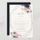 Den här blommigt guld-geometrin som vi gör igen när förnyelseinbjudan är perfekt för en rusningshändelse. Utformningen har vackra, handmålade mörk blått, blå, marinerade, rosa, blommor, guld och grönt bladverk, som adorerar ett geometriskt ram.