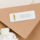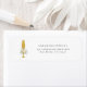 En enkel etikett med champagneflöjt från guld glitter bredvid ditt eget namn och din returadress.