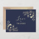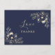 Blommigt Guld marinblått Bröllop Tack Vykort