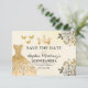 Meddela din speciella dag med Blommigten Guld Spara datumkvinceañerakortet. Den här eleganten har lyxfyllda accenttecken i guld blommigt som är mycket sofistikerade och charmerande. Perfekt för att ange tonen för din kommande quinceañera, så kombinerar det här datumet en aning regal skönhet med tidlös elegans. De känsliga detaljerna i guld symboliserar glädjen och nåden hos er milstolpe firande och ser till att era gäster markerar sina kalendrar för detta oförglömliga evenemang. Ett vackert föredöme till din quinceañera-dag!