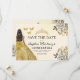 Meddela din speciella dag med Blommigten Guld Spara datumkvinceañerakortet. Den här eleganten har lyxfyllda accenttecken i guld blommigt som är mycket sofistikerade och charmerande. Perfekt för att ange tonen för din kommande quinceañera, så kombinerar det här datumet en aning regal skönhet med tidlös elegans. De känsliga detaljerna i guld symboliserar glädjen och nåden hos er milstolpe firande och ser till att era gäster markerar sina kalendrar för detta oförglömliga evenemang. Ett vackert föredöme till din quinceañera-dag!