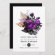 Halloween-temat bröllop spara datum-kort med accenter för lila, orange och svart.