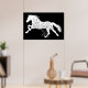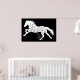 En detaljerad vit silhuett av en gallopande häst med naturliga bladaccenter, idealisk för fläkt av vilda djur och riddjursteman som söker snyggt, naturinspirerade kläder.