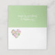 Söt bröllop vikte platskort i vitt och grönt, med en färglös liten vattenfärgad blommigt hjärtform, på framsidan. Anpassa för hand, för varje person vid mottagningen.