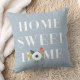 En dekorativ "Home Sweet Home" dekorativ kudde med blommigt typografisk design.