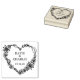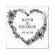 Söt blommigt hjärtkrans med par namn i klassisk serif och datum i modern sanserif-typografi. Underbara frimärke för bröllop eller något särskilt tillfälle.
