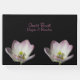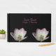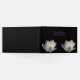 En enkel gäst bok med anpassningsbar i elegant. Detta vackra bok är svart med rosa text och två rosa blommar längs grund i bok. Hitta fler matchande produkter i Blommigten i kärlek bröllop-samlingar.