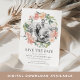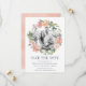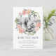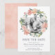 Vår Blommigt i mitten av sommaren sparar datumkortet ramar din favoritbild på förlovningen med en rund utandning av målat vattenfärg ro och peonblommor i mjuka nyanser av rosa, persikor och kräm, accentuerad med grön och eukalyptus. Ett modernt och elegant val för vår eller sommar-bröllop. Anpassa med namn, bröllop-datum, plats och bröllop webbplats med hjälp av fält.