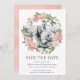 Vår Blommigt i mitten av sommaren sparar datumkortet ramar din favoritbild på förlovningen med en rund utandning av målat vattenfärg ro och peonblommor i mjuka nyanser av rosa, persikor och kräm, accentuerad med grön och eukalyptus. Ett modernt och elegant val för vår eller sommar-bröllop. Anpassa med namn, bröllop-datum, plats och bröllop webbplats med hjälp av fält.