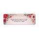 Röd, rosa och vita blommor omger en guld dubbla ram, på snäcka-rosa för att skapa en vacker returadressetikett. Mycket elegant och perfekt för ett formellt bröllop.