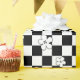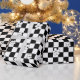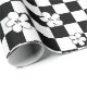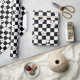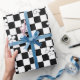Trendiget kontrollerade inslagningen papper med svart och vitt chessboard och söta blommor.