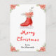 Den här eleganten och det här julvykortet för julgranar i fjol kan vara personlig med din familj namn. Den har en vattenfärgad röd isskridskoja och vackra rödpoinsettiska blommor av blommigt. Texten kombinerar handskript och sans serif typsnitt för en snyggt och ett modernt utseende.