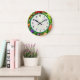 Denna konstnärliga, dekorativa klocka är täckt av blommor i varje färg av regnbågen. Njut av blommönstret gult, orange, rosa, rött, blått, lila och vitt, med grönt löv som bakgrund. När du visar detta påminns man om en Fransk Impressionistisk målning. Du kan rensa numren om du föredrar en enklare design.