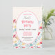 En underbar, färglös och feminin blommigt-temad födelsedagsinbjudan i rosa & lycklig färg och med ett lekfullt typsnitt, lämpligt för flickor i alla åldrar. Anpassa texten enkelt och ha en blast. - Kate Eden Art