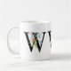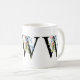 Ett personlig kaffe mugg med brev-monogrammet "W", med dekorativ vattenfärgsfärgad blommigt och bladbilder. Anpassa det enkelt med ditt namn eller skapa en unik gåva till dina nära.