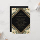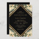 Elegant Black, elfenben och guld blommigt bröllopsinbjudan som innehåller uppgifter om bröllop i ett guld-geometriskt ram och som är försedd med elfenben/kräm ro och guld konetti. Matchande objekt är tillgängliga.
