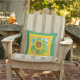 Blommigt, jumbosolrosa på gult/grönt kudde