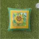 En bra och glad blommigt för in- och utsidan! En stor solrosa som gränsar till gult och orange, på en samordnande grönt. Många storlekar och tygtyper att välja mellan.