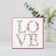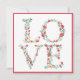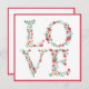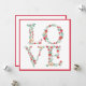 Det här ljuva Alla hjärtans kort har en dekorativ blommigt brev som stavar ut KÄRLEK. Varje brev har en grönt med ljusröda blommor. En del av brev innehåller ett kuvert och eller ett rött krona. Det finns en samordnande röd gräns på både framsidan och baksidan. Färg omfattar grönt, rött och benvitt. Baksidan lämnas tom så att du kan skriva ditt eget meddelande.