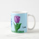 Söt, handmålad blommigt med guldblomma av gult, blå daisy med gult, lila tulip i grönt gräs. Kärlek är skrivet i svart skript. Söt ljusblått som sommarens mugg i himmel för att tända någons dag. Originalgrafiktverk av TamiraZDesign. www.zazzle.com/tamirazdesigns