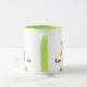 Söt blommigt med guldblomma av gult, blåblomma av gult och lila i gräset av grönt. Kärlek är skrivet i svart skript runt vitt mugg med ljust grönt trim. Söt mugg för att brista upp någons dag. Originalgrafiktverk av TamiraZDesign. www.zazzle.com/tamirazdesigns
