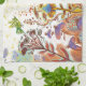 Ljusillustration med växter och fåglar blir en skarp accent på kökshandduken!