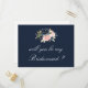Kortet har vattenfärgsfärgade blommor av marinblått och rosa och en elegant blå färg och manustext. Texten och färg kan vara personlig.