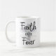 Blommigt kor med mugg design för det kristna citatet. "Faith over Fear". Blek lilac blommigt kor. Konstruktion av kristna teman.