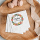 I napkins i möhippan i bröllop finns en vit blommigt som illustrerar utandningskonstruktionen med färgstarka blommor i vattenfärg och grön i Tuscan sol-pussade sommar eller fallskärmar av gyllene gult, rosa, korallröd orange, violett lila och rik av grönt. Den organiska handmålade utformningen är på ett vackert sätt ramar den moderna och snyggt anpassningsbarna i grått, grönt och orange färg som kan vara fullt personlig för bruden och hennes speciella händelse.