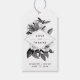 Rustiska men raffinerade bröllopsfavoriter har "kärlek och tack" satts in i ett modernt geometriskt inslag mot en bakgrund av vintage illustrerade orkidéblommor i svart. Anpassa dessa pappra märkre för brunkol med namn och bröllop-datumet längs grund.