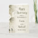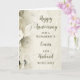 Lycklig bröllop-årskort för kusin och make med vackra vita blommor av vintage mönster och sentimentala versum.