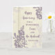 Lycklig bröllop-årskort för kusin och make med vacker vintage lila blommor och sentimental vers.
