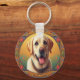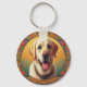 Blommigt Labrador Retriever Hund Colorful Gräns Nyckelring