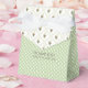 Söt grönt och vit bröllopsförmånslåda med en liten polka punkt mönster och en lattice som ser ut på hakan med färgstarka blommor. Anpassa den bruna texten på framsidan för att läsa vad du vill.