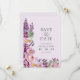 Blommigt Lavender Spara datumet. Med kalligrafi-skript för elegant och exekverande, handmålade vattenfärgsgrafik i mjuk lavender, rosa, djup burgundi och pulserande lila, adorberat med delikata vilda blommor, ro och elegant greenery. Perfekt för vår, sommar- och fallbröllop, varje föremål i denna samling som viskar kärlek, lockbete och tidlös romantik som fastställer stadiet för ert oförglömliga firande. Låt naturens skönhet och vintagens charm härliga din speciella dag med vår fängslande samling.