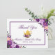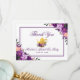 Tack för ditt kort för Lila av vattenfärgen Blommigt Ultra Violet Guld Möhippa Tea Party
