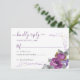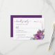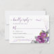 Ett enkelt Bröllop OSA-kort som är dekorerat med en bukett av lila blommor. Den här vattenfärgen blommigt- och bladformgivningen har handskrivna manustypografi, konetti-punkter för lila och guld, ro-blommor och blomknoppar med grått grönt löv och löv. Bläddra i butiken om du vill ha ett alternativt svarskort, osa av online och matchande objekt i Blommigten Push Lila.