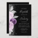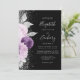 Blommigt Lila Silver Glitter Black QR-kod Bröllop Inbjudningar