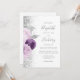 Blommigt Lila Silver Glitter White QR Code Bröllop Inbjudningar
