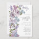 Inbjudan till blommigt Lila Studenten. Märk din högskoleexamen med den här fantastiska, moderna roliga inbjudan som är adormerad med romantiska vattenfärglasyr i mjuk lila, lavender ro och blå jaktblommor med lush greenergiy. Den här eleganten är perfekt för vår- och sommarevenemang och erbjuder plats för tre av dina favoritfoton på baksidan. Den är helt anpassade med redigerbar ordalydelse, typsnitt stilar, färg och storlekar för ett minnesvärt firande.