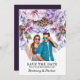 Blommigt Lila Watercolor Bröllop Photo Spara Datumet
