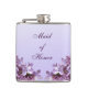 Lättlivade ämnen är temat för denna Maid of honor-kolv i elegant med gräns av rosa och flytande lilac-sprejar på blekens bakgrund av lila av gradient. Texten kan anpassas till kostym vid ditt speciella tillfälle.