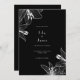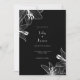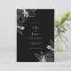 Med det här anpassadet sparar gästerna i inbjudan till bröllop datuminbjudan, med vita illustrationer av blommigt och moderna teckensnitt på svart bakgrund. Den här inbjudan är perfekt för vilken säsong som helst.