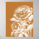 Blommigt Line Art Illustration i Mustard-Gult Poster