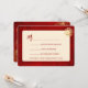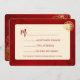 Guld är konstblommor och en lyckosymbol för guld dubbla på en strålande röd bakgrund. OSA Kinesiskt Bröllop-kort. På baksidan finns en skannerbar fyrkantig kod för webbplatsen bröllop.