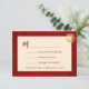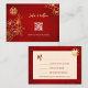 Guld är konstblommor och en lyckosymbol för guld dubbla på en strålande röd bakgrund. OSA Kinesiskt Bröllop-kort. På baksidan finns en skannerbar fyrkantig kod för webbplatsen bröllop.