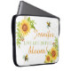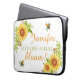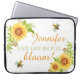 En elegant rustisk gult solrossolrospersonlig Laptop sleeve med citatet " Levande liv i fullt blomning!" som består av en vit bakgrund som dekorerats med en gult av vattenfärg i söt med ett bin och en sträng av blommigt. Gör ett vackert Pension, lämnar, fyller år, jul eller mors dag-gåva Personaliserar med ett namn. Citatet kan ändras vid behov.