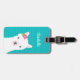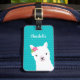 Cute anpassningsbar-bagagetaggen för att anpassa dina resväskor. Utformningen har en söt vit lamaillustration, blomma och teal polka-punktbakgrund.